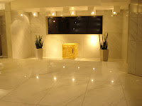 This marble installation in the main lobby is elegantly presented as a work of art in itself, but I couldn't find any attribution for the artist.